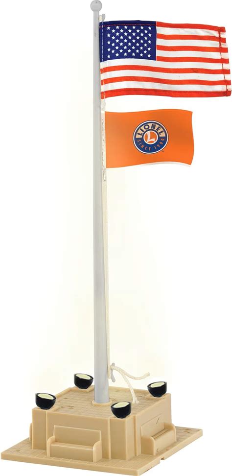 Lionel Illuminated Flagpole Model Train Accessory, O Gauge Train Layout Decoration With An American & Lionel Flags, Lighted Base, Ages 14+