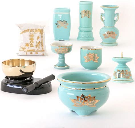 Domestic Gold Plated Category: Buddhist Ritual Implements Set Ceramic Category: Buddhist Ritual Implements, 6 Cerami