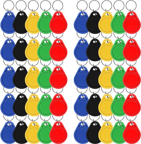 RFID Key Fobs 125Khz 50 PCS, T5577 Proximity ID Tag Rewritable Keypad Card Door Lock Entry Access Control System Fob Tag Wholesale (Colorful)