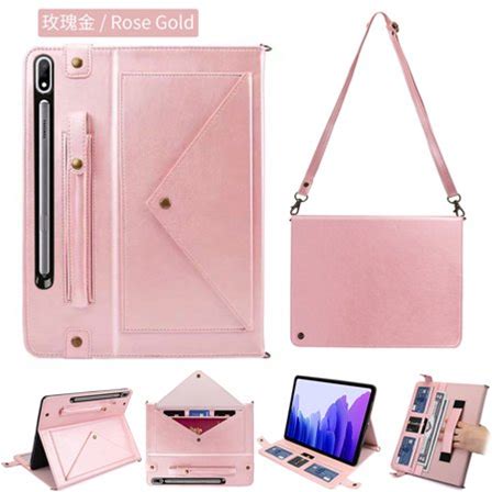 TECH CIRCLE Galaxy Tab S8 Plus Case (SM-X800) Galaxy Tab S7 Plus Case (SM-T970) - Shockproof Multifunctional Case With Stand /Hand Strap /Shoulder Strap /Card Slots /Cash Holder /Phone Pocketrosegold