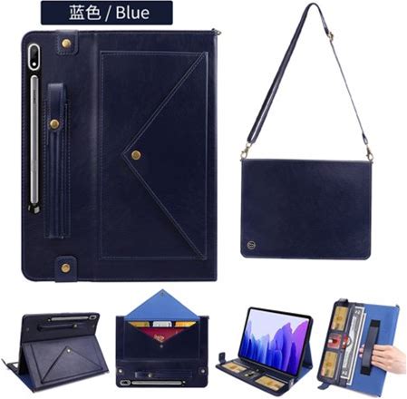 TECH CIRCLE Galaxy Tab S8 Plus Case (SM-X800) Galaxy Tab S7 Plus Case (SM-T970) - Shockproof Multifunctional Case With Stand /Hand Strap /Shoulder Strap /Card Slots /Cash Holder /Phone Pocket Blue