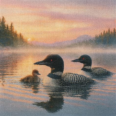Cross Stitch Pattern Common Loon Family | Misty Lake Sunset | PDF Pattern