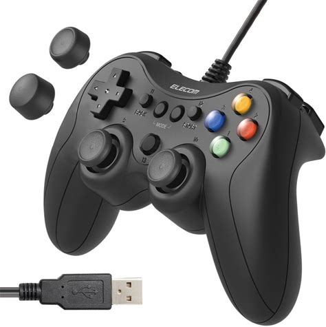 Elecom Jc Gp20 Sbk Wired Gamepad, Xinput, Ps System, Continuous Fire, Switch Between Stick Modes, Lightweight, Black