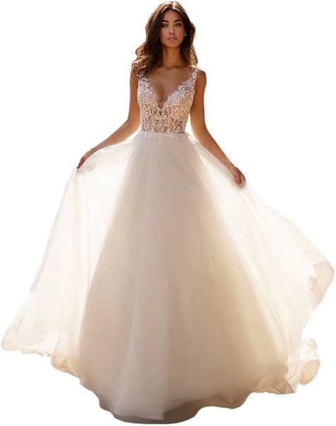Wirunsy Women's Lace Beach Wedding Dresses For Bride 2025 V Neck Tulle Applique Bridal Gowns With Long Sleeve